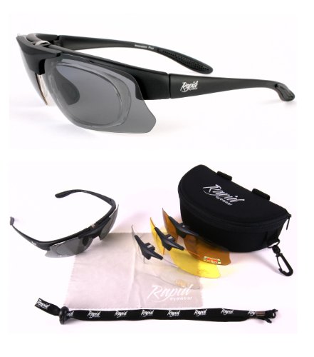PRO PERFORMANCE PLUS PRESCRIPTION READY SPORT SUNGLASSESThis very latest version of Rapid Eyewear's highly successful prescription frame, the Pro Performance Plus, adds a clear safety lens to the original package, making them perfect for cycling, shooting, running etc. The price shown includes the addition of single-vision prescription lenses - if you require bifocals, please see separate listing for this product.MAKING TO YOUR PRESCRIPTION - HOW IT WORKSOnce you have completed your purchase, we will send you a prescription form to fill in. Simply copy the relevant details from those given to you by your optician when you had your last eye test.WILL MY PRESCRIPTION WORK?Any prescription with SPH (sphere) readings that are no greater than +4.5 or -4.5 will be fine. if you are in any doubt, call us on 01622 812133 before making your purchase.THE FRAMESMade from a lightweight yet robust polycarbonate, with rubber nose pads and side arm inserts for maximum comfort. Fits most sizes and shap...